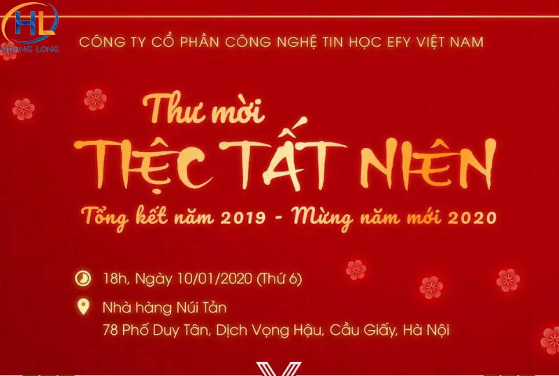- Đơn vị hoặc người tổ chức: Giúp người nhận biết ai là bên mời, đặc biệt quan trọng với thiệp mời tất niên công ty hoặc sự kiện có đối tác tham dự.