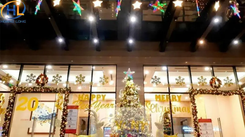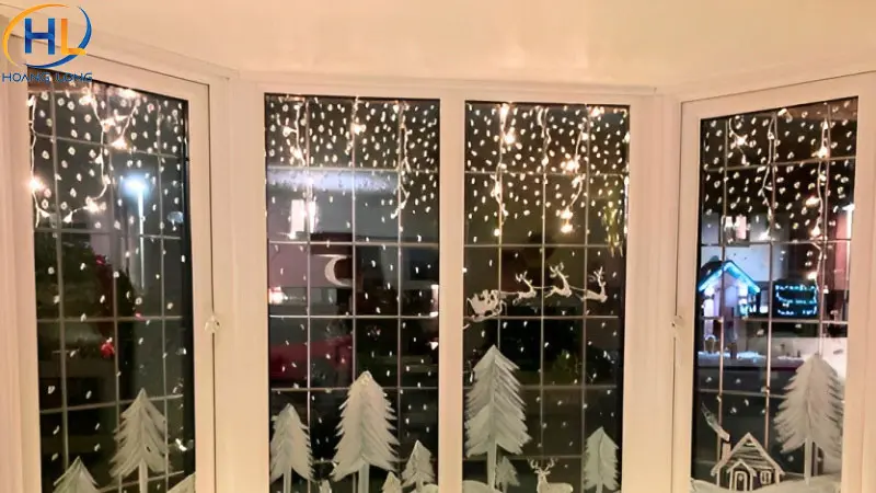 - Đèn LED dây hoặc đèn chớp: Giúp cửa kính trở nên lung linh, đặc biệt vào buổi tối.