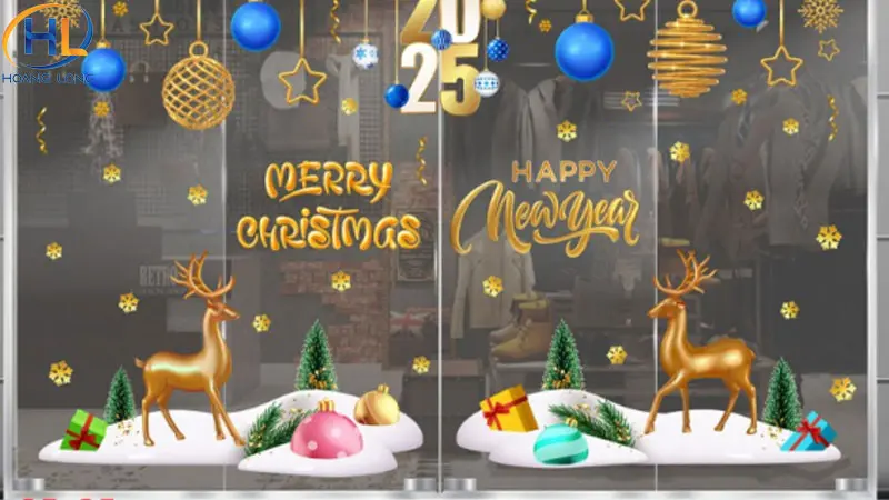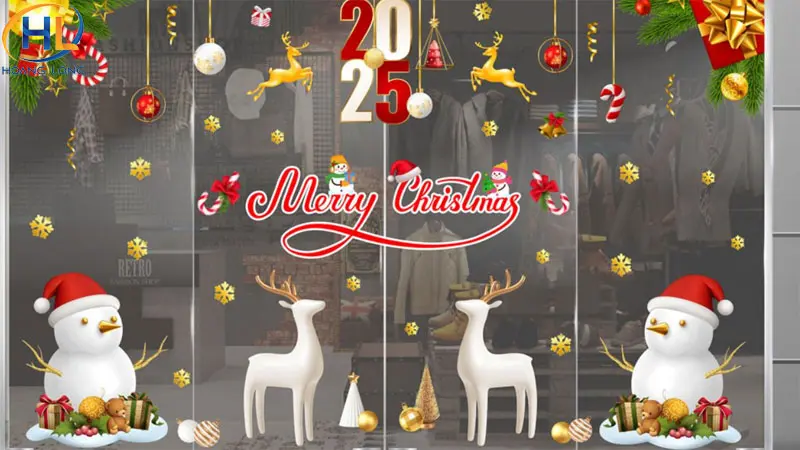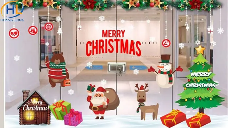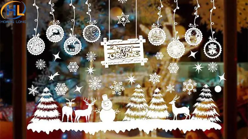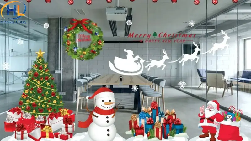 - Decal Noel: Các họa tiết phổ biến như ông già Noel, người tuyết, cây thông, bông tuyết… dễ dán và tạo không khí Giáng Sinh rõ rệt.