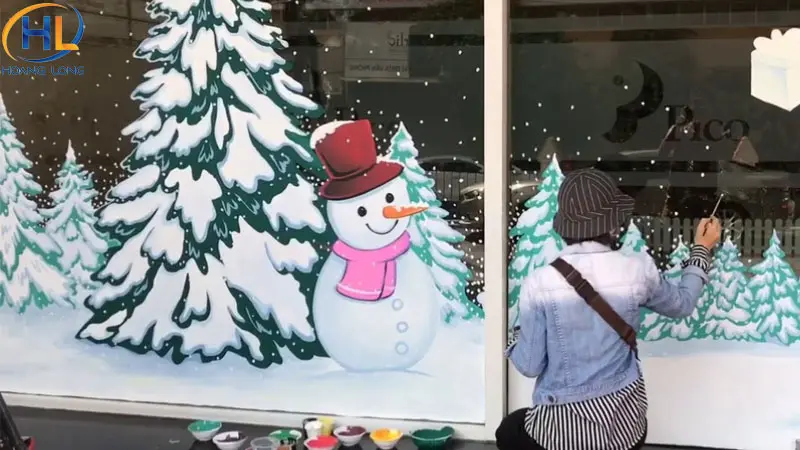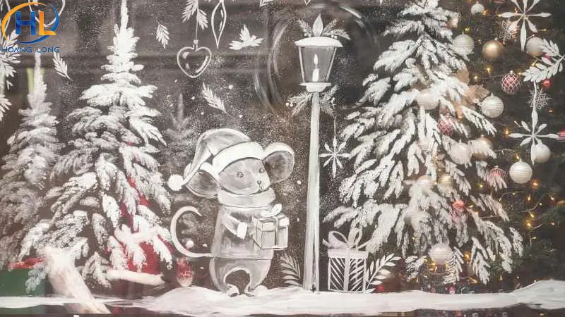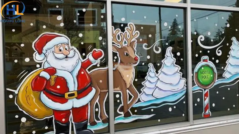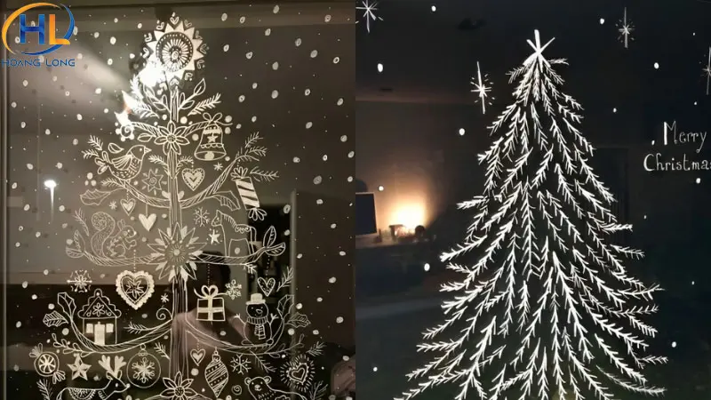 Vẽ Noel lên cửa kính bằng bút vẽ kính hoặc sơn chuyên dụng là cách trang trí sáng tạo và mang dấu ấn cá nhân. Bạn có thể vẽ cây thông, bông tuyết, tuần lộc hoặc viết lời chúc Giáng Sinh. Ưu điểm của cách này là dễ thực hiện, dễ thay đổi và tạo cảm giác độc đáo cho không gian.
