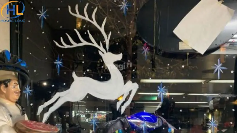 6. Dán hình tuần lộc xốp trang trí Noel cửa kính