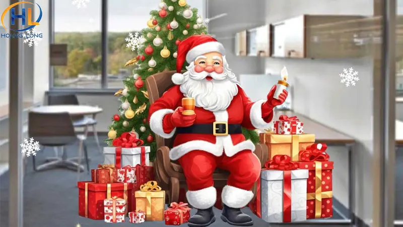 Hình xốp ông già Noel mang lại cảm giác vui vẻ, ấm áp cho mùa lễ hội. Bạn có thể dán ông già Noel đang vẫy tay, phát quà hoặc đứng bên túi quà lớn. Đây là cách trang trí đơn giản nhưng rất hiệu quả, giúp cửa kính trở nên thân thiện và thu hút ánh nhìn.