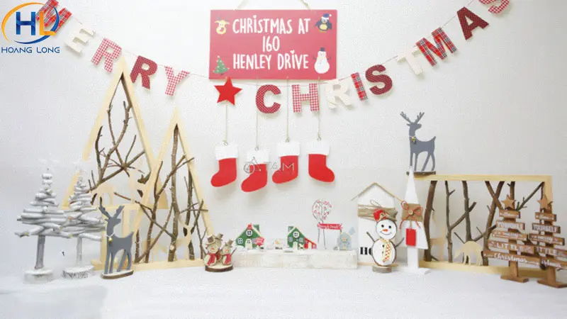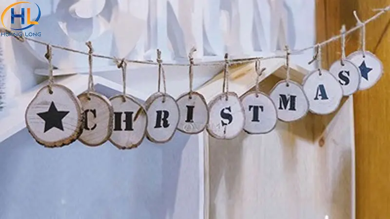 Ngoài decal, bạn có thể sử dụng chữ treo như “Merry Christmas”, “Happy Holidays” để trang trí cửa kính Noel. Chữ có thể làm từ giấy bìa, xốp hoặc mica nhẹ, treo sát mặt kính hoặc gắn trực tiếp lên kính. Kết hợp thêm dây đèn LED hoặc bông tuyết nhỏ xung quanh sẽ giúp cửa kính trông nổi bật hơn nhưng vẫn gọn gàng, tinh tế.